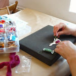 The participants selected a laser-cut endangered bird piece on the Red List, felted wool top, and embellished the piece using pencils, beads and threads.
